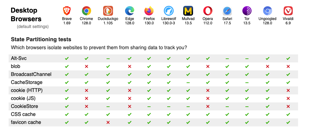 PrivacyTests.org evaluates the privacy features of various web browsers by conducting tests on their default settings. The site compares popular browsers like Brave, Chrome, Firefox, and Safari, focusing on their ability to prevent tracking and manage data.