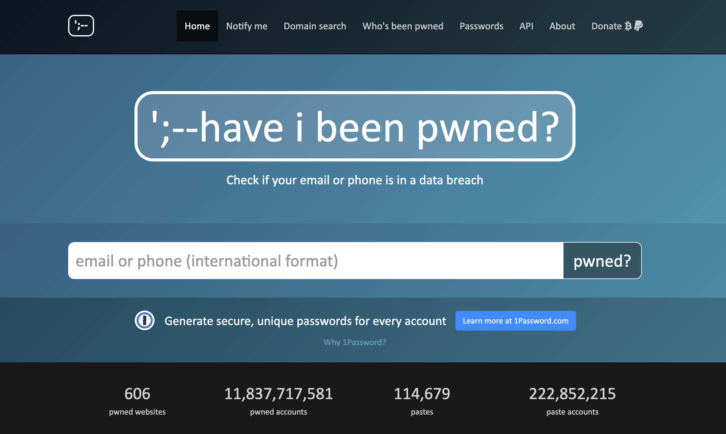 Have I Been Pwned. A great tool for you to verify if your email address has been compromised in a data breach. https://haveibeenpwned.com/
